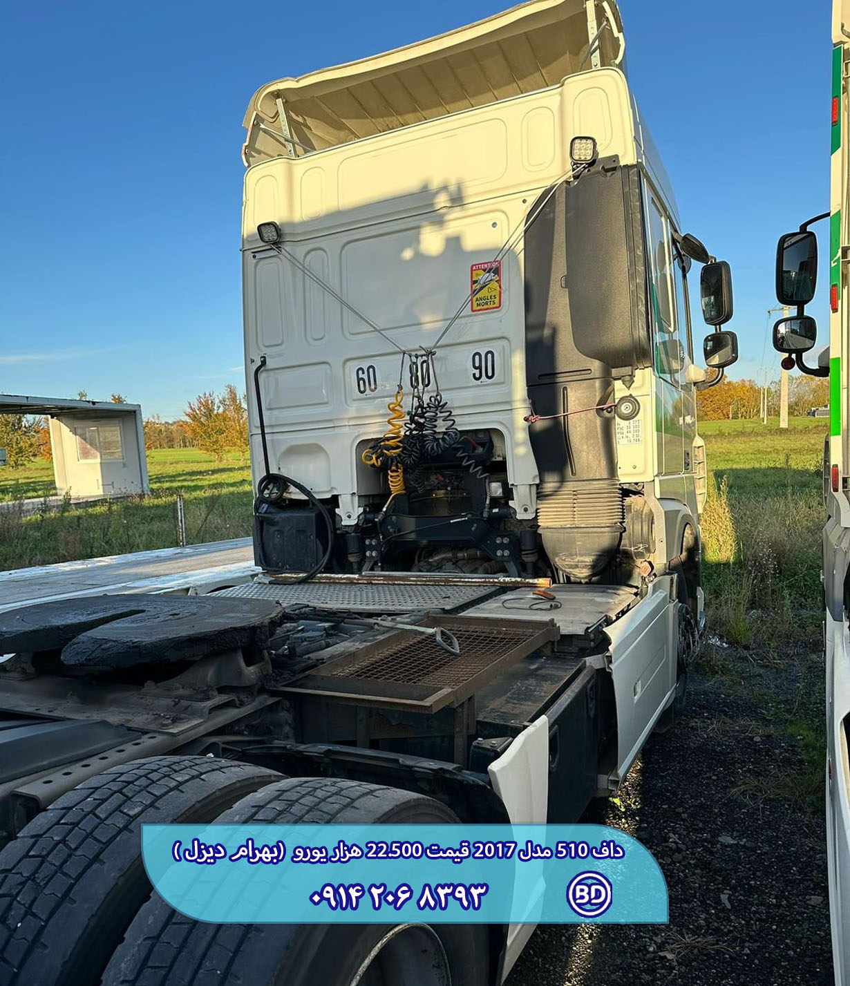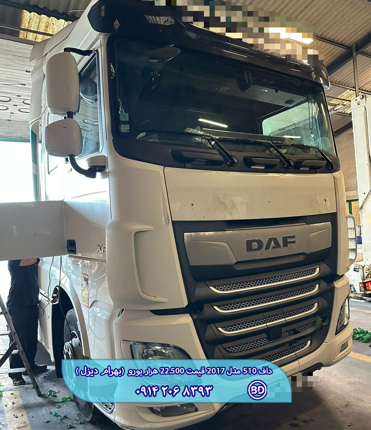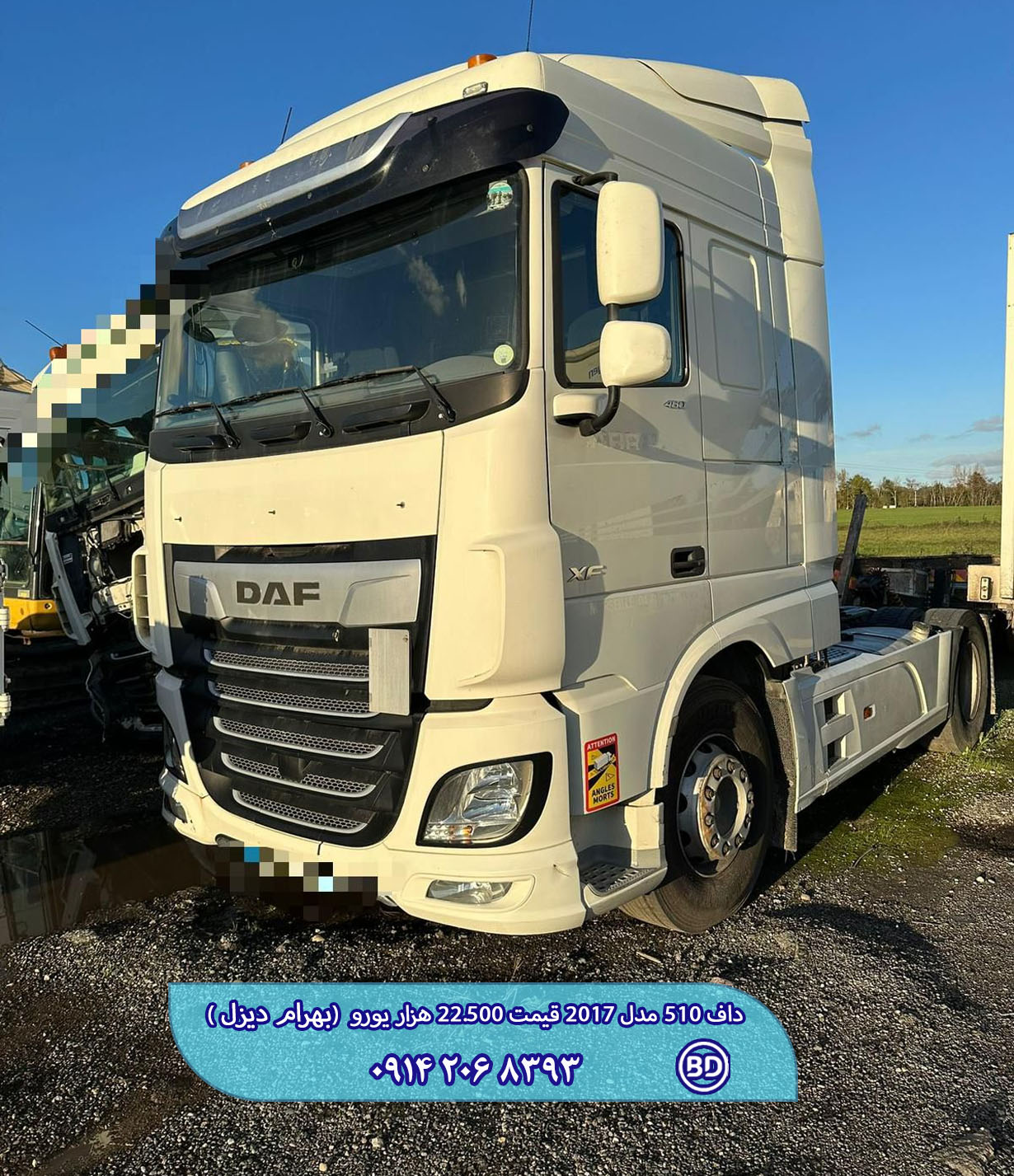 کشنده داف 510 یکی از بهترین کامیون های حال حاضر دنیاست . این کامیون قدرتمند و زیبا با ظاهری بی نظیر و کابین بسیار زیبا مانند داف 510 هر راننده ای را به خود جذب میکند. این کامیون دارای اینتاردر است و داشتن این خصوصیت قدرت و اطمینان بالاتری را برای کامیون ایجاد میکند . این خودرو دارای موتور یورو 6 ، نوع موتور این خودرو 510 اسب بخار قدرت دارد. این DAF دارای جعبه دنده Traxon اتوماتیک با 12 دنده است.
