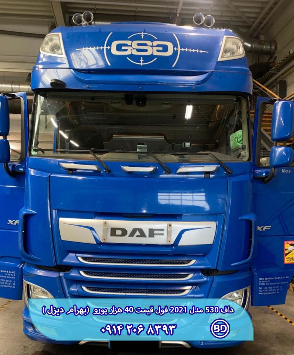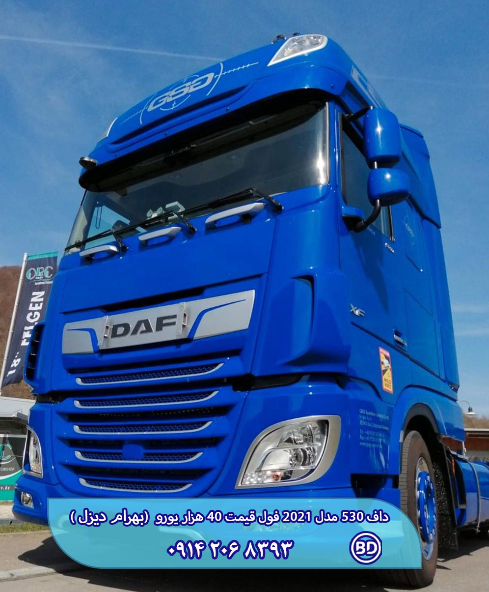 کشنده داف 530 یکی از بهترین کامیون های حال حاضر دنیاست . این کامیون قدرتمند و زیبا با ظاهری بی نظیر و کابین بسیار زیبا مانند داف 530 هر راننده ای را به خود جذب میکند. این کامیون دارای اینتاردر است و داشتن این خصوصیت قدرت و اطمینان بالاتری را برای کامیون ایجاد میکند . این خودرو دارای موتور یورو 6 ، نوع موتور این خودرو 530 اسب بخار قدرت دارد. این DAF دارای جعبه دنده Traxon اتوماتیک با 12 دنده است.